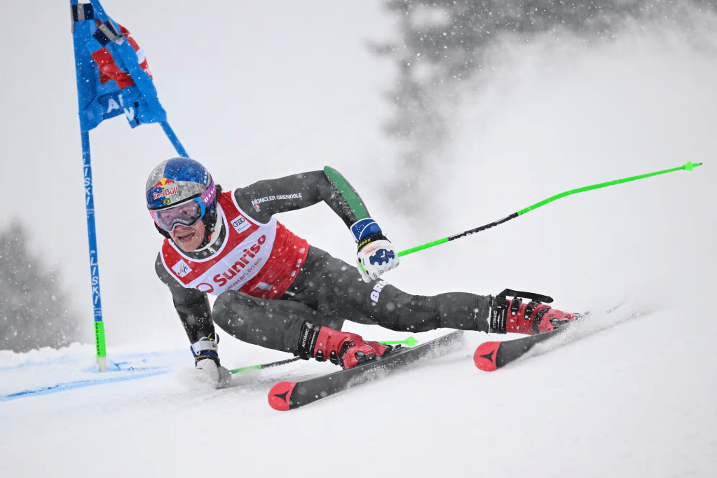 Egy hullámnál kidobta a pálya uszkve 2 méterre, majd a középső dombnál a külső léce is elemelkedett. Emiatt messzire sodródott és erősen keresztbe kellett állítania a léceket. Ezek a mentőmozdulatok sok időbe kerültek, ezért nagy lett a hátránya. Csak néhány századdal előzte meg Tumlert. Marco Schwarz (6.) stabil és könnyed volt a pálya felső részén. Közel ment a kapukhoz, a középső szakasz hullámait jól kezelte. A célaréna bejáratánál azonban kissé kisodródott, ami elvitte a lendületét. Marco Odermatt (1.) egyértelmű szintkülönbséget mutatott. Felül rövid, határozott kanyarokat ment, jól engedte futni a léceket, a hullámok sem zavarták meg. Bár a végső letörése kissé túl direkt lett és enyhén keresztbe álltak lécei, az addig felépített sebesség elegendő volt az élre álláshoz. Ez klasszikus Odermatt-futás volt: kontrollált agresszió, minimális veszteséggel. Kiosztott mintegy fél másodpercet a brazilnak.