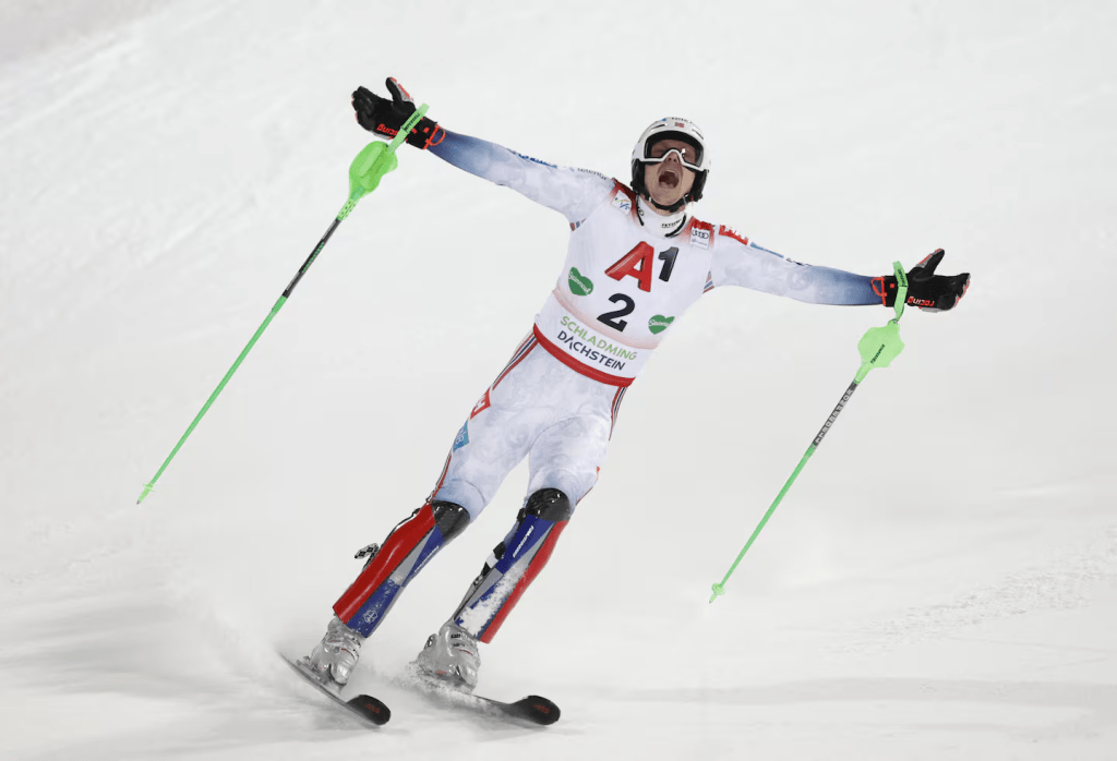 A cortinai világbajnokság ezüstérmese, ahol csak a csúcsformának örvendő Gut-Behrami tudta megelőzni. A 2024-es killingtoni fájdalmas bukása után időbe telt, míg egyáltalán rajthoz mert állni óriásban. A következő áttörés sem ment simán, ám az újévben már elkezdett gyorsan haladni. Az agresszív ívkezelés harmonikus mozgással kezdett párosulni, így az utolsó versenyen visszatért a dobogóra. 2018 olimpiai és 2023 világbajnoka kész arra, hogy Hanni Wenzel és Ingemar Stenmark után (1980, Lake Placid) ő legyen a harmadik síző, aki mindkét technikai számban olimpiai bajnokságot nyer egyazon évben.