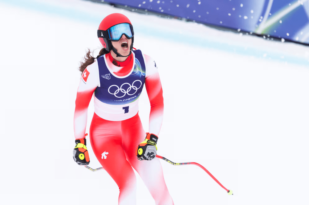 A svájci női (gyorsasági) csapat egy – előre várható – terített betlit mutatott be eddig az olimpián, szuperóriásban is csak Malorie Blanc (10.) bravúrjában bízhattak. Ezt leginkább a crans-montanai főpróbán aratott, semmiből jött győzelme alapján gondolták az alpesiek. Az 1-es rajtszám egy edzésfutam nélküli, egyetlen pályabejárás után megtartott, merőben változékony szakágban, mint a Szuper-G, bizony nem szerencsés. Egy sokadik elősíző tulajdona, aki megmutatja élesben a többieknek, hol lehet hibázni, hol kell visszavenni, milyen ívet botorság bevállalni. S így tovább. Ellenpéldák persze akadnak, gondoljunk csak Franzoni wengeni sikerére. A kezdés biztatóra sikerült, két szektor után még a virtuális dobogón állt. A hullámos, izgalmas fordulókban bővelkedő szakaszon kétszer is elemelkedett a külső léce, másodszor keresztbe is kellett állítania. A pálya laposabb részén ez időveszteséget okozott, eleve sokszor választott direkt ívet.