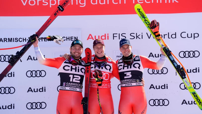 Giovanni Franzoni (4.) túl sok időt hagyott fönt, a záró kanyaroknál pedig túl messze sodródott. A közel optimális Hölle így nem ért dobogót. Az első Kandahar- lesiklása után azért nem lehetett elégedetlen. Vincent Kriechmayr (4.) rutinosan kezelte a lejtő tetején az ütéseket. A Hölle bejáratán kissé visszavett a tempóból, ellenben szép magasan oldotta meg ezt a kulcsszakaszt. A háromszoros olimpiai bajnok igazolta remek formáját. Franjo von Allmen (6.) nagyon durvult, fent valósággal sisteregtek külső lécei. Akadtak lesodródásai, ám a csúszós szakaszon minden egyes tizedet visszahozott. A Hölle után került ki a ritmusból, rendre lemaradt az ideális ívről. A dobogóról ma lemaradt, sőt Franzoni is előtte végzett.