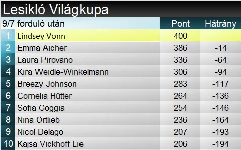 Holnap az eredetileg is tervezett lesiklással folytatódik a hétvégi program. A verseny után lesiklásban véglegessé is válik a női lesiklók VK-döntős rajtlistája.