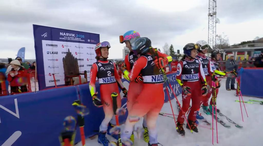 S ha már szóba került a szabály szó… A csapatverseny forgatókönyve a megszokottak szerint alakult, azaz mérkőzésenként 4-4 párharcot bonyolítanak le, mind a lányoknál, mind a fiúknál síelnek egyszer-egyszer a piros, illetve a kék kapuk között. Holtverseny esetén a legjobb férfi és legjobb női eredmény együttese alapján hirdetnek eredményt.