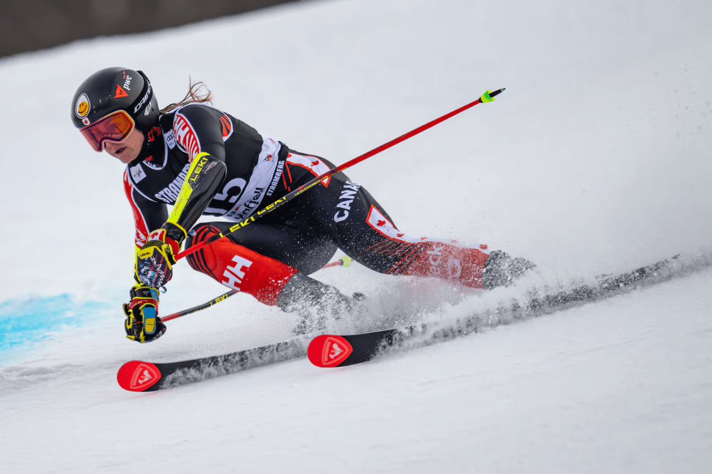 Valérie Grenier (1.) nagyon engedte a léceit, a meredekig bődületes tempót vitt. A cél előtt kissé elemelkedett a hóról, viszont gyorsan korrigálni tudott. Jelentős sebességet így nem vesztett, és 2 századot így is megőrzött előnyéből. A rövid reklámszünetet követően érkezett Emma Aicher (3.). Bődületesen bekezdett a németek összetett aspiránsa, és bár a fenti átmenetnél távolabb került a kapuktól, a meredeken már ismét tűpontosan síelt. A végén kissé nagyobb élt használt, így a vezetést nem tudta átvenni a kanadaitól. Stephanie Brunner (6.) a felső átmenetet tankönyvi precizitással, patikamérlegen adagolt agresszióval síelte meg. Sajnálhatja, hogy a lankán hibázott, mert ott eldobott közel egy másodpercet. Pedig a meredek végén még egálban volt Grenier-vel.